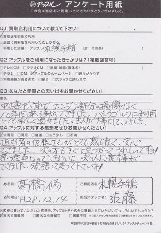 次の方もすぐに見つかって嬉しいですヨ!禁煙車なのできれいに次の人に渡す事ができました。頑張って走ってくださいネ!