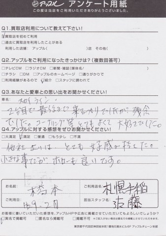 査定時のやさしい対応ありがとうございました。