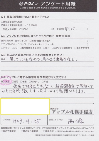 他店では考えられない超高額査定で買い取っていただき感動しました!心より感謝いたします。