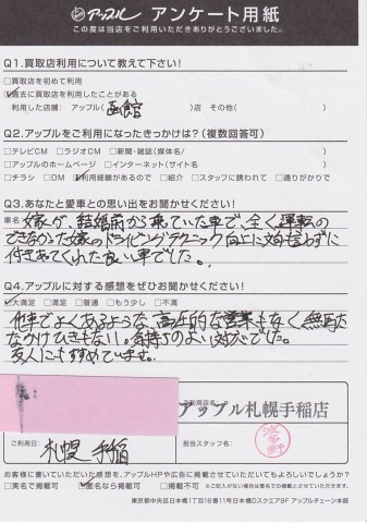 嫁が、結婚前から乗っていた車で、全く運転の出来なかった嫁のドライビングテクニック向上に文句も言わずに付き合ってくれた良い車でした。