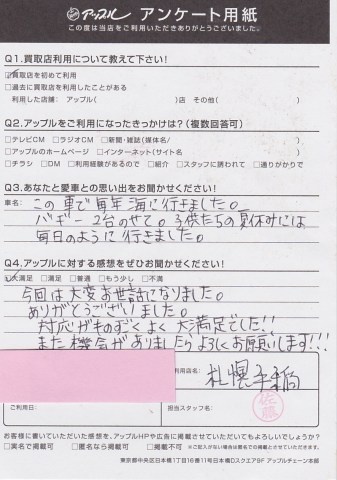 この車で毎年海に行きました。バギー2台のせて。子供たちの夏休みには毎日のように行きました。