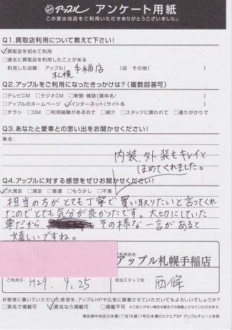 この度はご利用ありがとうございます。素敵なお車を買取させていただいたので感謝しております。