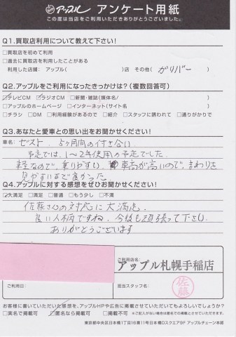 佐藤さんの対応に大満足。良い人柄ですね。今後も頑張ってください。ありがとうございました。