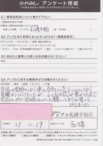 前回は都合により、車を会社に売る事になり見積もりだけでしたが、とても対応がよかったので、次回はぜひ西條さんにお願いしようと思っておりました。