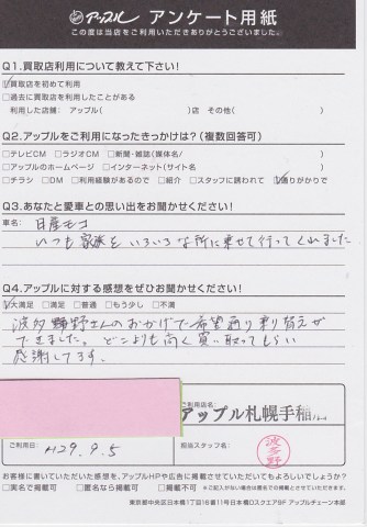 波多野さんのおかげで希望通り乗換えができました。どこよりも高く買い取ってもらい感謝してます。