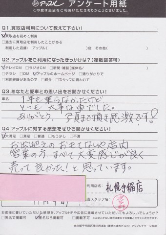 お出迎えのおもてなしや店内営業の方、すべて大変感じが良く売ってよかった!と思っています。