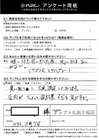 買取に大変満足しております。店内がちょっと殺風景すぎる気がする。