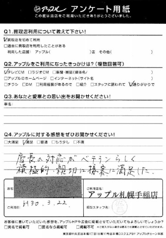 店長の対応がベテランらしく積極的、親切に接客に満足した。