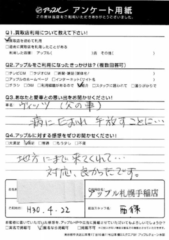 気持ちの良いお取引きありがとうございました。ぜひ、また呼んでいただければと思います。
