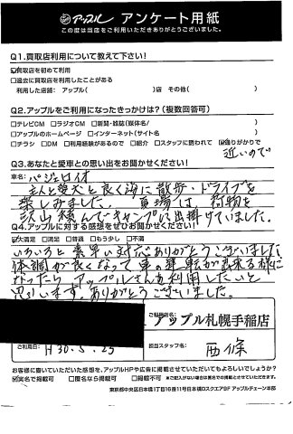 いろいろと素早い対応ありがとうございました。体調がよくなって車の運転が出来るようになったらアップルさんを利用したいと思います。ありがとうございました。