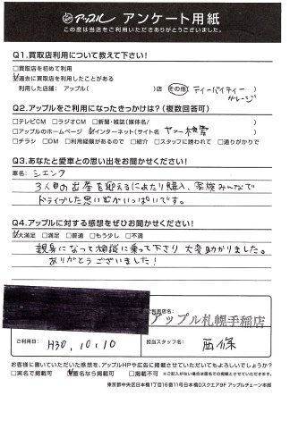 大切にされているなと感じるお車でした。当店に譲っていただき感謝しております。またのご利用お待ちしております。