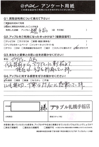 この度は当店をご利用いただきありがとうございます。今回で3回目のご契約になりますね。いつもご依頼ありがとうございます。近くに来られた時はぜひ、寄ってください。