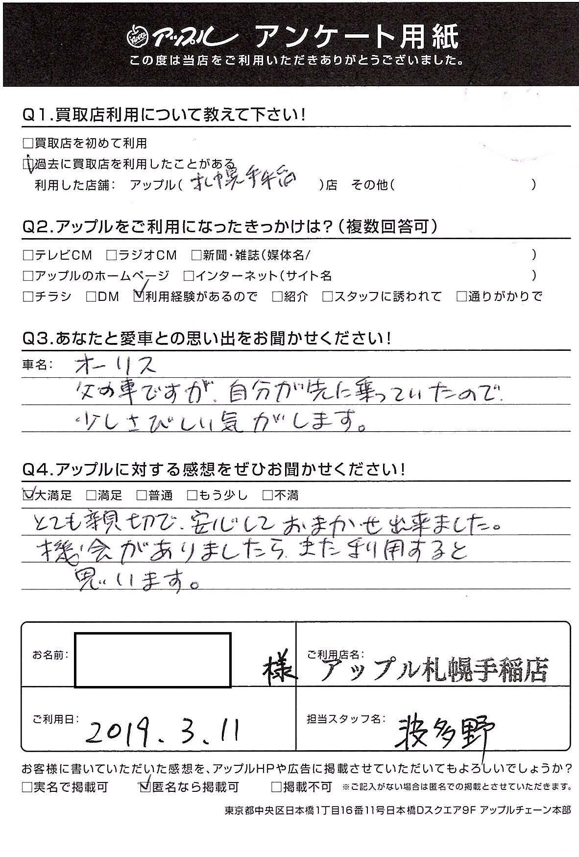 とても親切で、安心してお任せ出来ました。機会がありましたらまた利用すると思います。