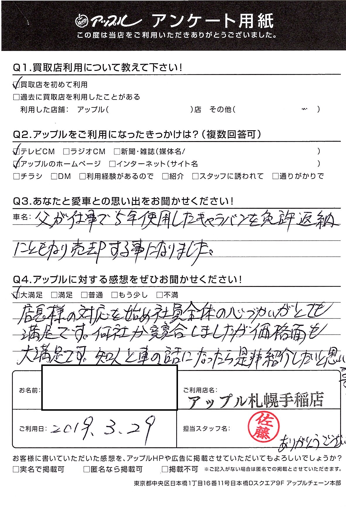 手稲区 H様 車名:日産 キャラバン