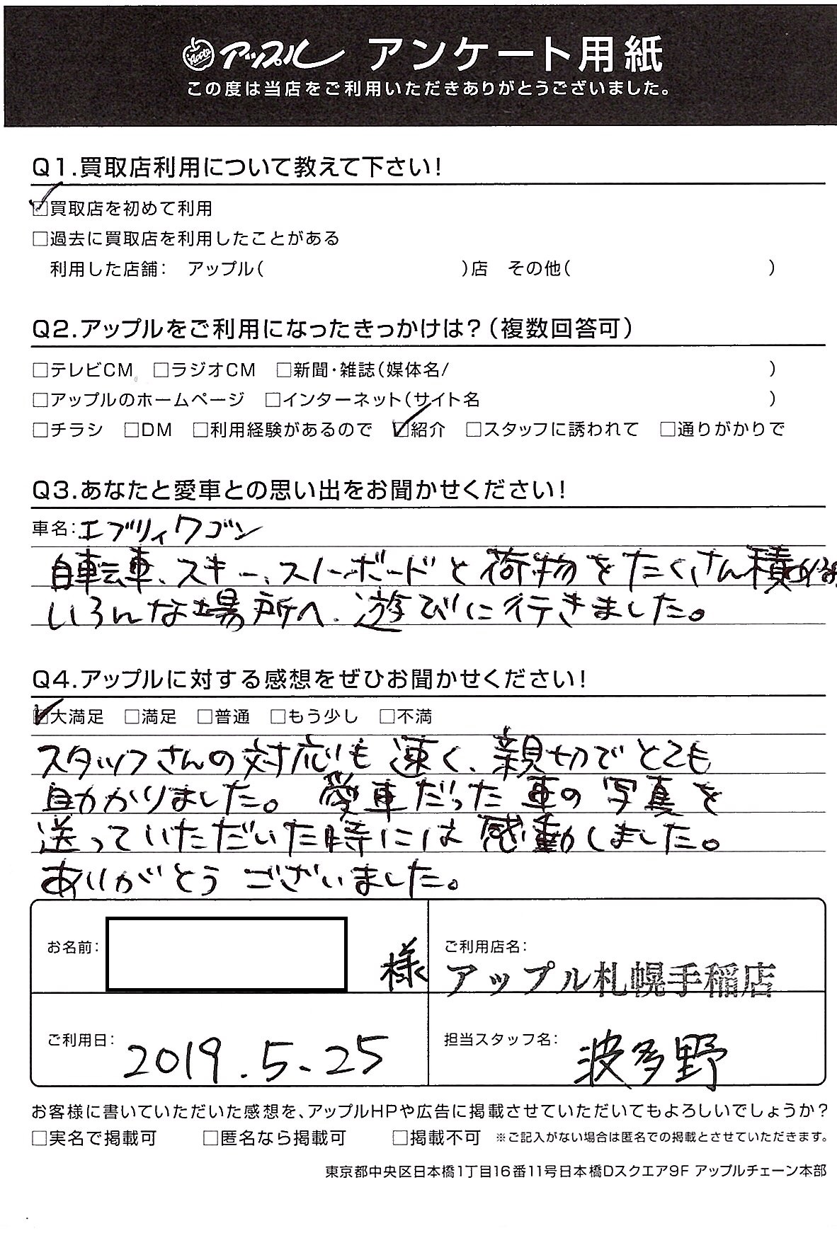 スタッフさんの対応も速く、親切でとても助かりました。愛車だった車の写真を送っていただいた時には感動しました。ありがとうございました。