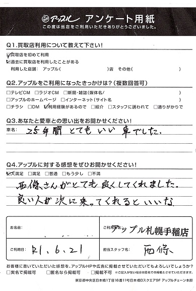 手稲区 T様 車名:トヨタ ランドクルーザー80(H1年10月~H9年12月)