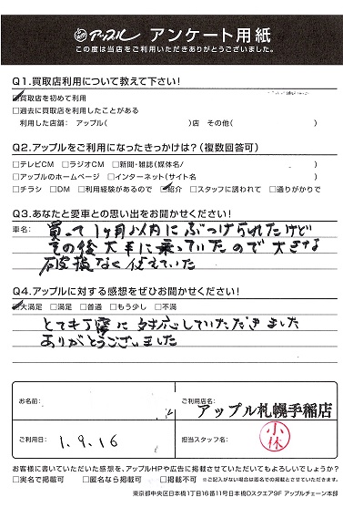 この度はありがとうございました。