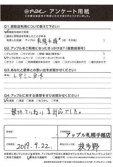 東区 N様 車名:スバル レガシィB4
