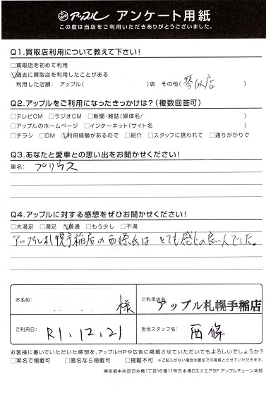 アップル札幌手稲店の西條さんはとても感じの良い人でした。