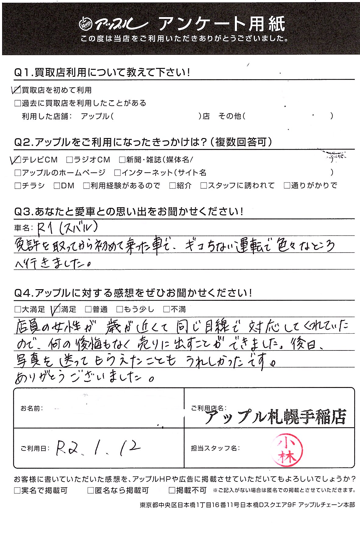 北区 N様 車名:スバル R1