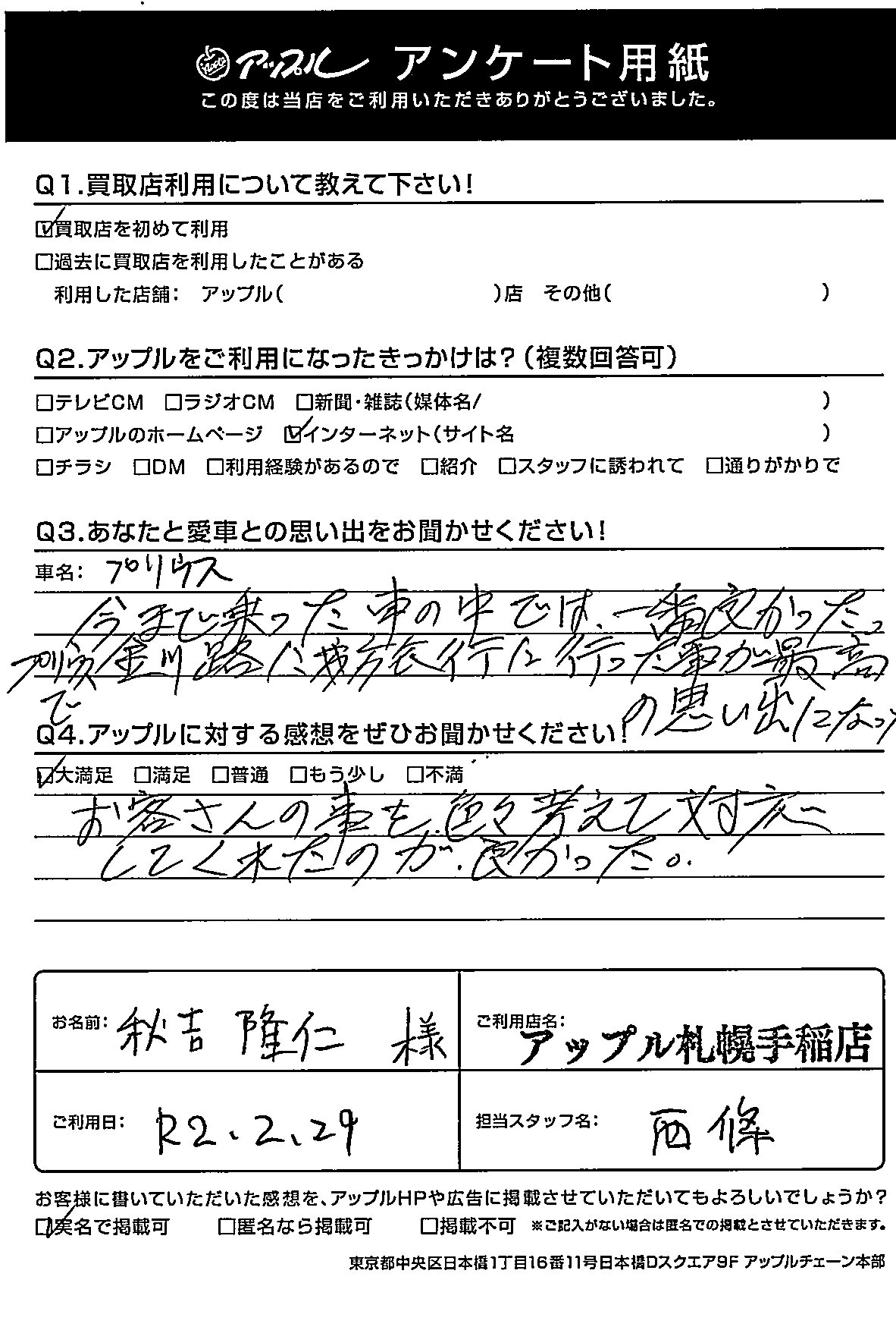 大切なお車を譲っていただき感謝しております。