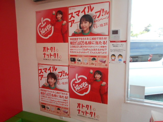 早速ですが只今「アップル」では買取強化キャンペーンを開催しています。期間限定9/1~10/31までスマイルア~~~ップ!ル キャンペーンを行っております。