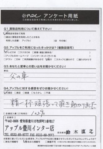 お車のご相談・ 査定だけでもOK! カンタン 入力 30秒 アップルがブランド買取始めました! お電話でも受付中! 受付時間10:00 ~ 19:00 0533-89-9777 お車のご相談・ 査定だけでもOK! カンタン 入力 30秒 アップルがブランド買取始めました! お電話でも受付中! 受付時間10:00 ~ 19:00 0533-89-9777 アップルがブランド買取始めました! お電話でも受付中! 受付時間10:00 ~ 19:00 0533-89-9777 店舗情報 在庫車 スタッフ紹介 ブログ お客様の声 キャンペーン お得 無料査定 click お客様の声 ご記入日: 2017/01/29 M様 愛車との思い出・・・父の車アップルに対する感想・・・精一杯頑張って頂きたすかりました。 前へ 次へ お客様の声一覧を見る