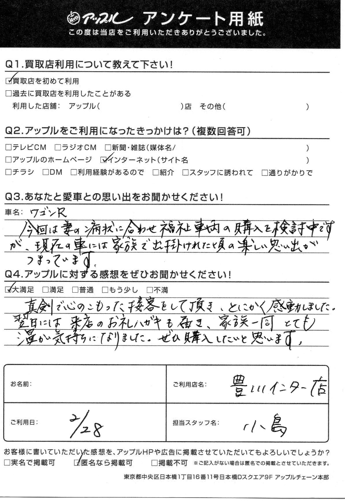お車のご相談・ 査定だけでもOK! カンタン 入力 30秒 アップルがブランド買取始めました! お電話でも受付中! 受付時間10:00 ~ 19:00 0533-89-9777 お車のご相談・ 査定だけでもOK! カンタン 入力 30秒 アップルがブランド買取始めました! お電話でも受付中! 受付時間10:00 ~ 19:00 0533-89-9777 アップルがブランド買取始めました! お電話でも受付中! 受付時間10:00 ~ 19:00 0533-89-9777 店舗情報 在庫車 スタッフ紹介 ブログ お客様の声 キャンペーン お得 無料査定 click お客様の声 ご記入日: 2020/02/28 愛知県 匿名希望様 車名:スズキ ワゴンR 真剣で心のこもった接客をして頂き、とにかく感動しました。翌日には来店のお礼ハガキも届き、家族一同とても温かい気持ちになりました。ぜひ購入したいと思います。 前へ 次へ お客様の声一覧を見る