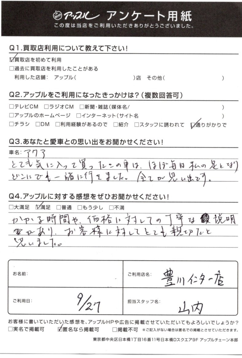 お車のご相談・ 査定だけでもOK! カンタン 入力 30秒 アップルがブランド買取始めました! お電話でも受付中! 受付時間10:00 ~ 19:00 0533-89-9777 お車のご相談・ 査定だけでもOK! カンタン 入力 30秒 アップルがブランド買取始めました! お電話でも受付中! 受付時間10:00 ~ 19:00 0533-89-9777 アップルがブランド買取始めました! お電話でも受付中! 受付時間10:00 ~ 19:00 0533-89-9777 店舗情報 在庫車 スタッフ紹介 ブログ お客様の声 キャンペーン お得 無料査定 click お客様の声 ご記入日: 2020/09/27 愛知県 匿名希望様 車名:トヨタ アクア かかる時間や、価格に対しての丁寧な説明があり、お客様に対してとても親切だと思いました。 前へ 次へ お客様の声一覧を見る