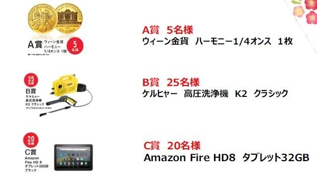 キャンペーンの期間中、ご成約いただきましたお客様の中から抽選で下記の賞品が当たるチャンス!
