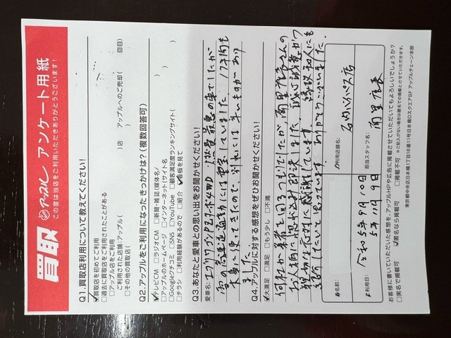 何社か業者を回るつもりでしたが南里店長さんのお人柄に惚れ込み即決しました。誠心誠意かつ丁寧な対応に感謝しています。知人にも紹介したいと思います。ありがとうございました。