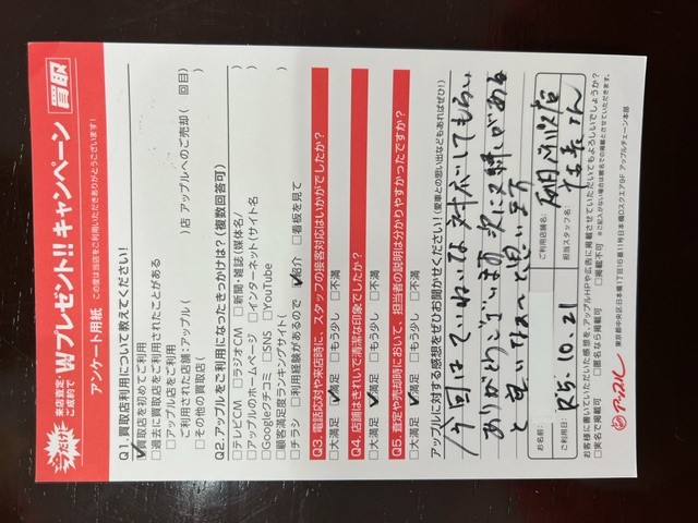 お車のご相談・ 査定だけでもOK! カンタン 入力 30秒 アップルがブランド買取始めました! お電話でも受付中! 受付時間9:00~18:00 トラブル防止の為電話査定はお断りしております。 0120-685-900 お車のご相談・ 査定だけでもOK! カンタン 入力 30秒 アップルがブランド買取始めました! お電話でも受付中! 受付時間9:00~18:00 トラブル防止の為電話査定はお断りしております。 0120-685-900 アップルがブランド買取始めました! お電話でも受付中! 受付時間9:00~18:00 トラブル防止の為電話査定はお断りしております。 0120-685-900 店舗情報 在庫車 スタッフ紹介 ブログ お客様の声 キャンペーン 無料査定 click お客様の声 ご記入日: 2023/10/21 S様 車名:レクサス LS (国内仕様 右H H29年10月~HYBRID含) Q:アップルに対する感想をぜひお聞かせください!満足今回はていねいに対応してもらいありがとうございまします。次に又縁があると良いなぁ~と思います。 前へ 次へ お客様の声一覧を見る