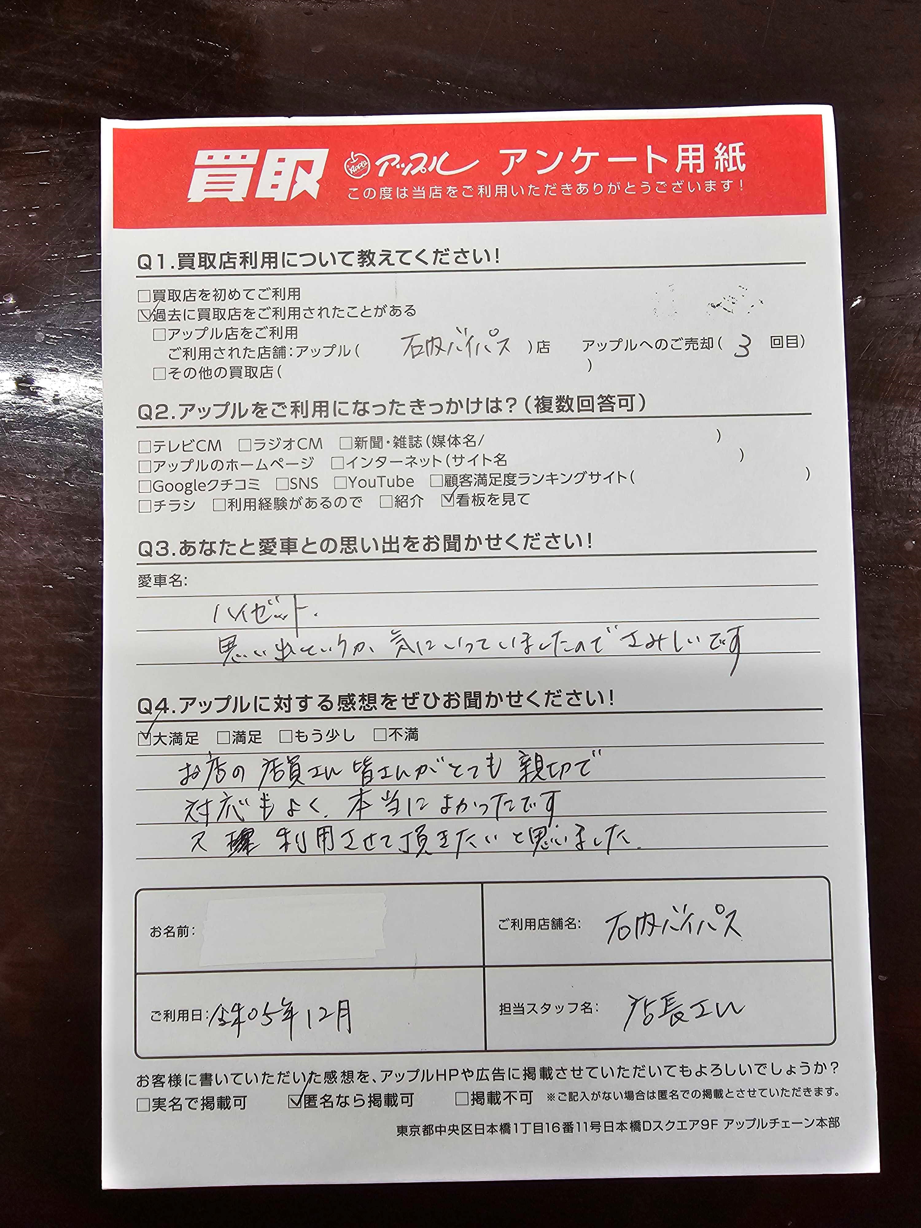 広島県広島市 U様 車名:ダイハツ ハイゼットカーゴ
