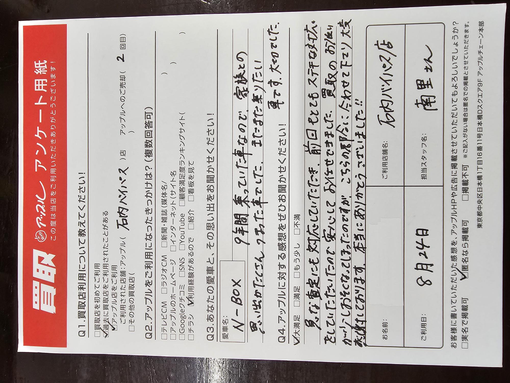 急な査定にも対応していただき前回もとてもステキな対応をして頂いたので安心してお任せできました。少し遅くなってしまったのですがこちらの都合に合わせて下さり大変感謝しております。