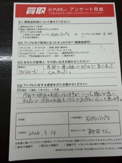 今回で3回目の利用になりますがいつも感じが良い対応で次回の利用もこちらでお願いしたいと思います。