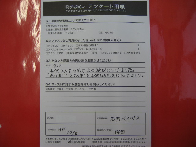 A.車名:タント