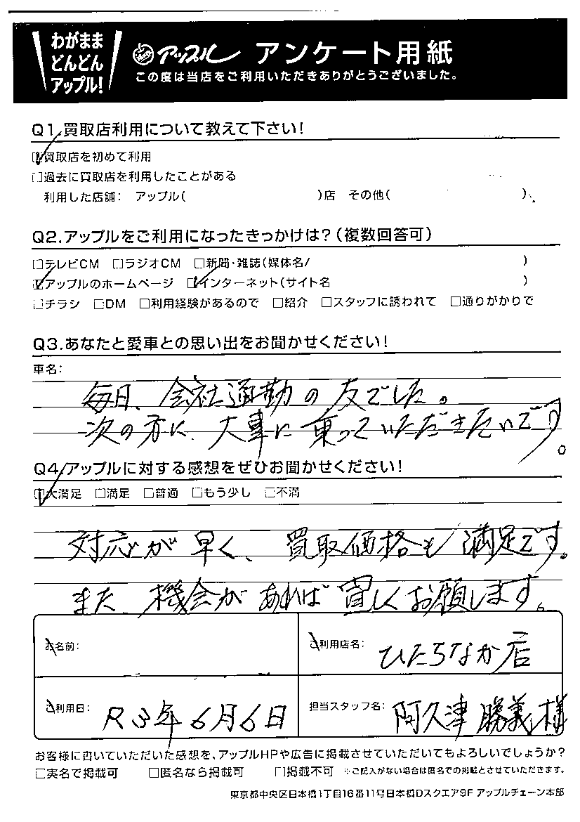 この度は、クラウンHVを当店へお任せ下さり、ありがとうございました。ぜひ、また機会にご相談よろしくお願い致します。