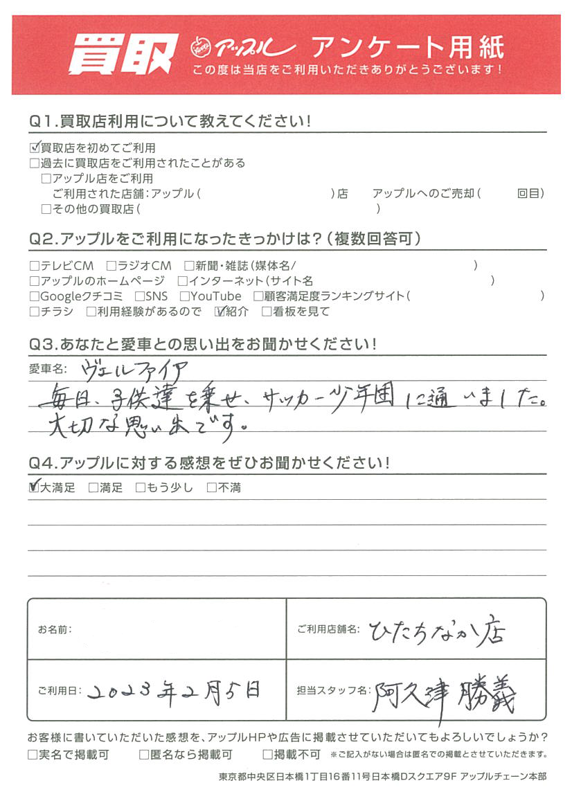 この度は、ご家族の思い出が詰まった大切なお車をお任せ下さり、ありがとうございます。