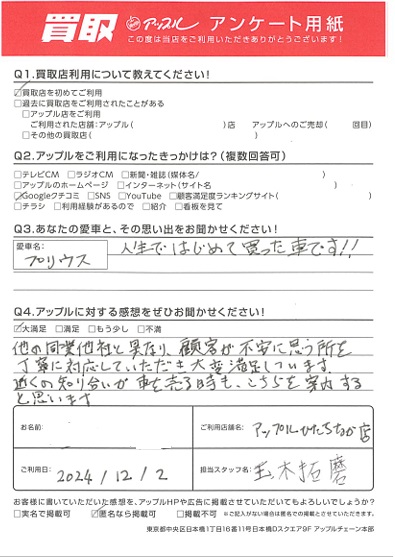 S様 車名:トヨタ プリウス(2023年3月~のPHVを含む)