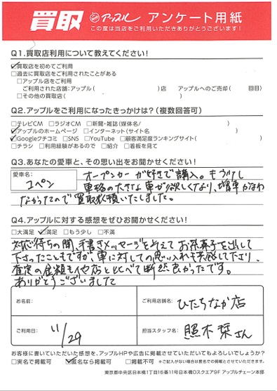 車に対しての思い入れも共感して下さり、査定の金額も他社と比べて断然良かったです。