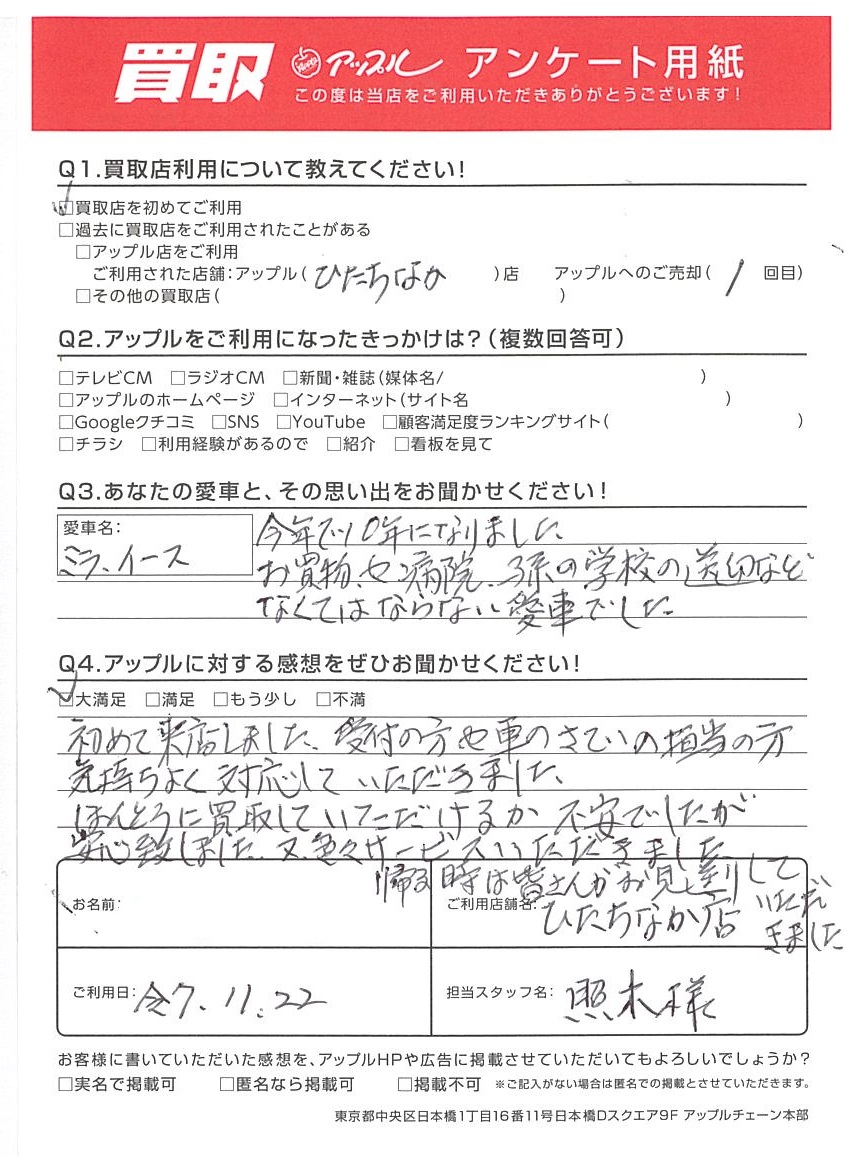 K様 車名:ダイハツ ミライース