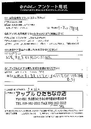 他店に比較して高く査定して頂けて良かったです。(パーツを高く評価頂いた)