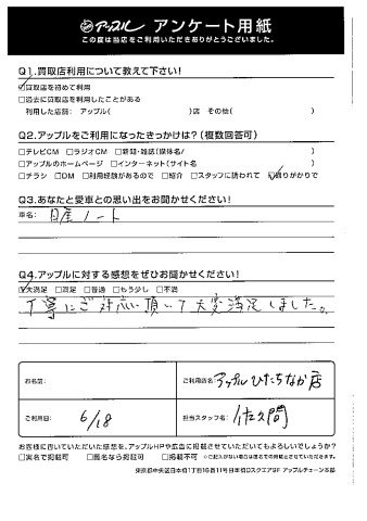 この度は当店をご利用いただきありがとうございます。スタッフ一同またのご利用をお待ちしております。