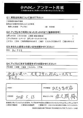 ☆大満足☆ 他店とは違い、大変丁寧に対応いただきました。