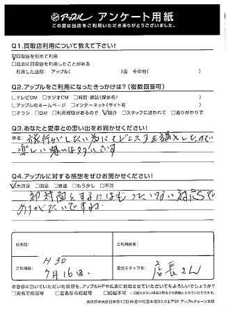 こちらこそ、思い出がたくさん詰まったお車を当店へお任せくださり、大変嬉しく思います。その後、体調はいかがですか?連日の異常な猛暑で、体調管理が特に重要になりますね。。。