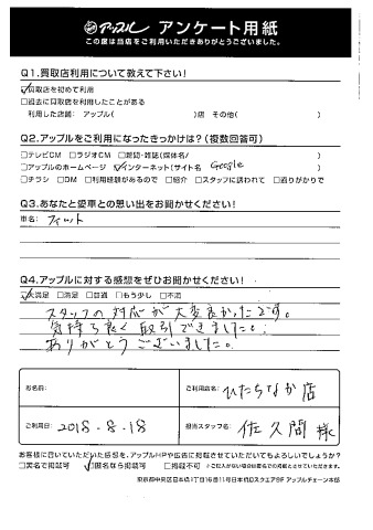☆大満足☆ スタッフの対応が大変良かったです。気持ち良く取引できました。ありがとうございました。