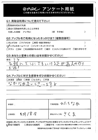この度は、ミラをお任せくださりありがとうございました。