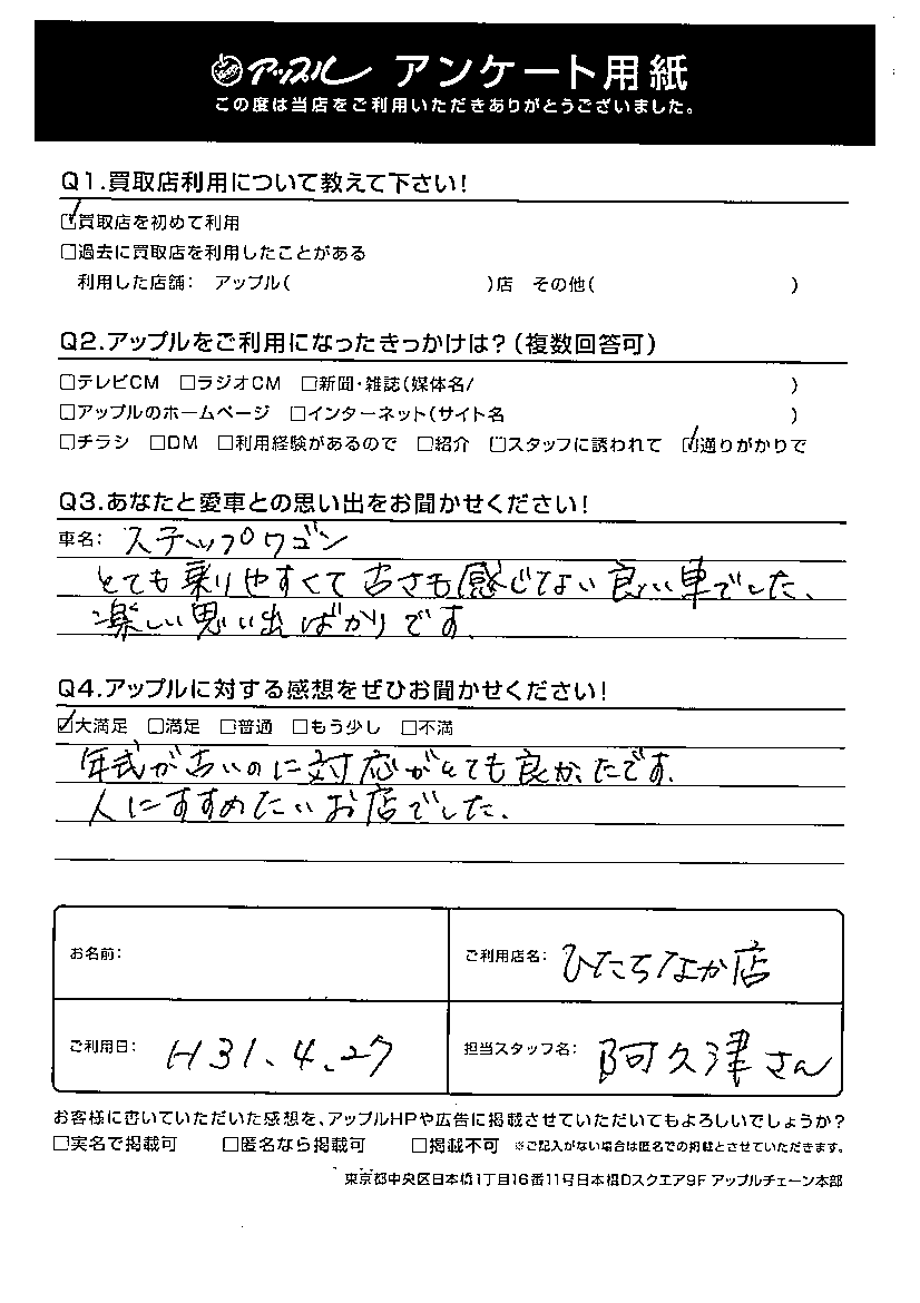 K様 車名:ホンダ ステップワゴン