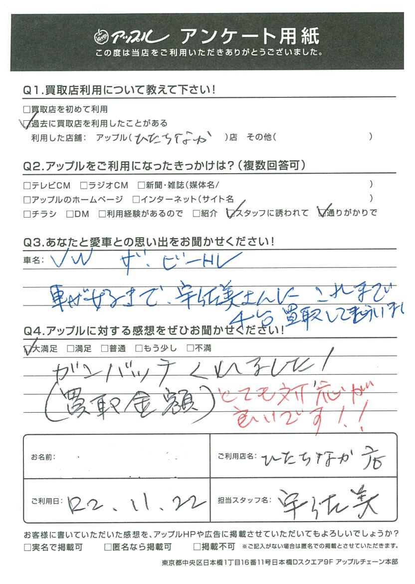 F様 車名:フォルクスワーゲン ザ・ビートル