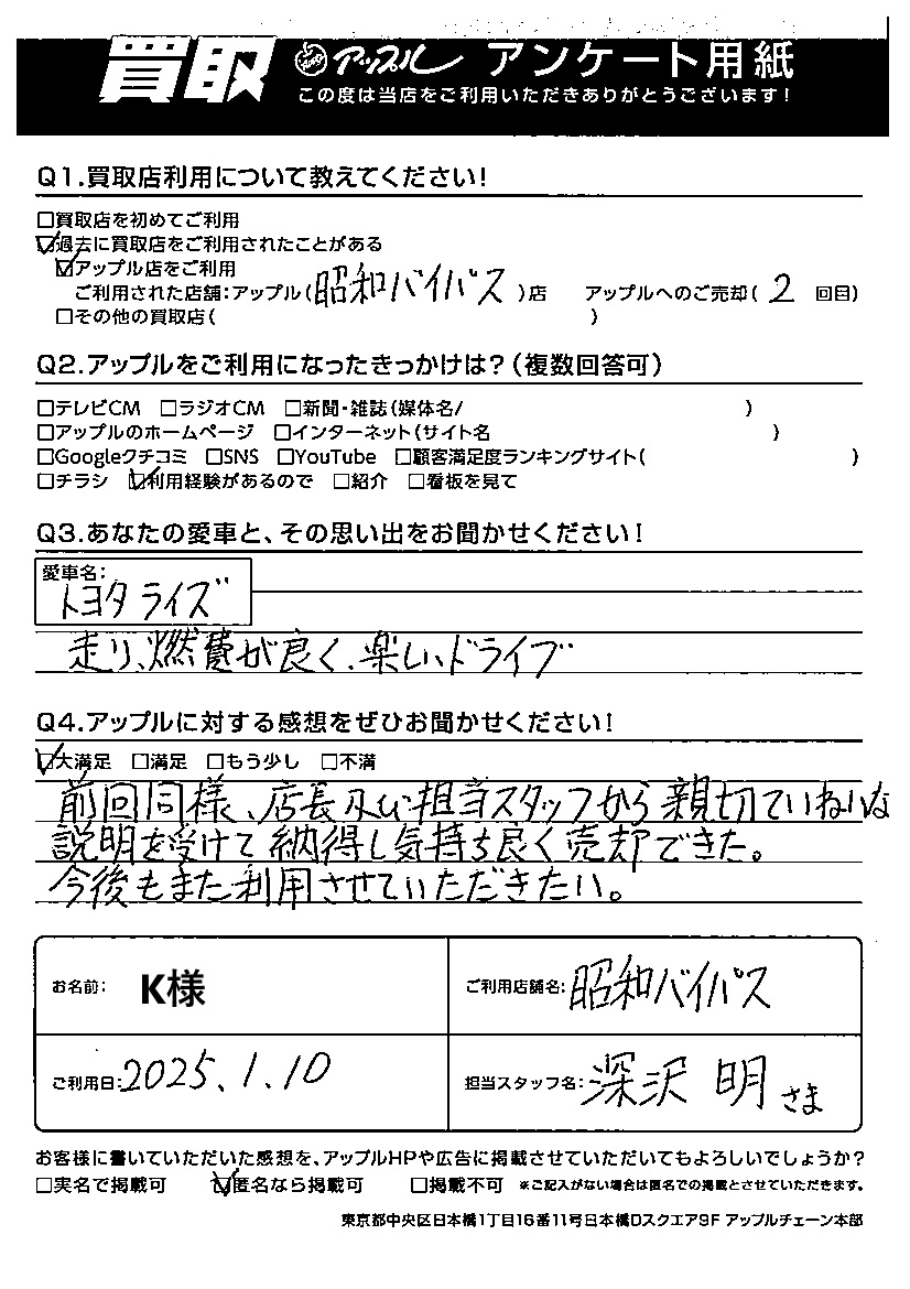 納得し気持ちよく売却できた。今後もまた利用させていただきたい。